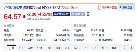 查看最新行情新浪科技讯 10月11日晚间消息,美股三大指数集体低开,道指跌0.28%,纳指跌0.55%,标普500指数跌0.51%。台积电跌超4%,台积电台股今日收跌8.3%,创下历史最大单日跌幅。Coinbase涨逾2%,谷歌宣布与Coinbase合作,允许用户使用加密货币支付云服务。
