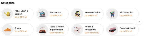 Temu一级类目,截图来源Temu官网