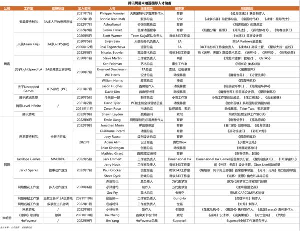 竞核统计了自2020年以来,腾讯网易米哈游招揽的海外人才,看看在这个国内厂商从手游反攻主机的节点,他们在做什么样的游戏,又采取了什么策略。