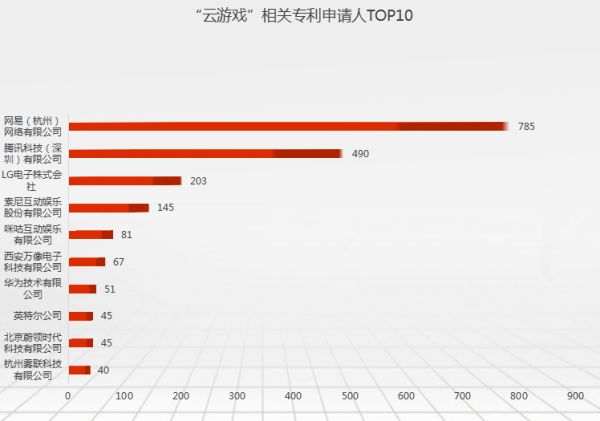 在Patentics数据库中以“云游戏”为关键词检索,得到3281件发明及实用新型专利,进行进一步筛选后,其中数量排名前十的申请人为: