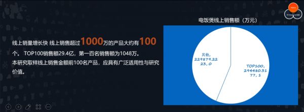 当时的依据是排名前100的产品销售总量约占整体线上销量的50%左右。这种情况下去分析销量排名前100名产品的功能结构等一系列参数,数据才具有代表性。