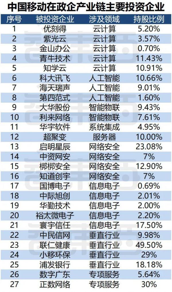 中国移动的资本运作已然逐步形成生态,助力其在政企项目中的竞标和交付。