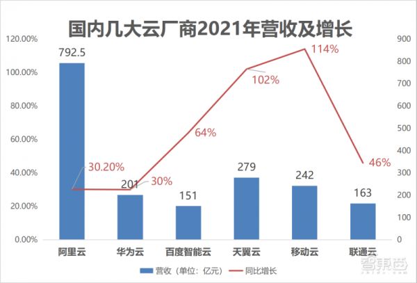 ▲国内几大云厂商2021年营收及增长情况(仅统计发布业绩的公司)