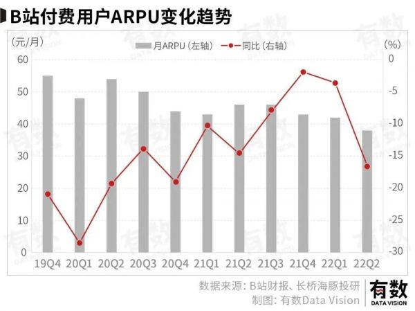 但从直播到电商,这中间的转化需要过程,而B站的劣势一是没有电商基因,在“人、货、场”三要素中完全没有“货”的基础;二是因为受众年龄、圈层的问题,消费力层面其实要弱于主流消费人群,且付费用户ARPU数据在过去三个季度持续同比下滑。