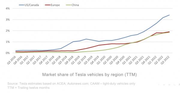 特斯拉在全球的市场份额 图片来源:特斯拉财报
