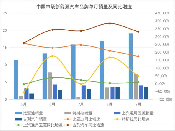 中国市场新能源品牌汽车单月销量图片来源:DoNews