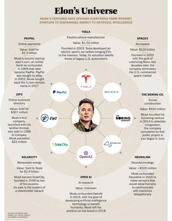 马斯克和他的商业版图。来源:《时代》