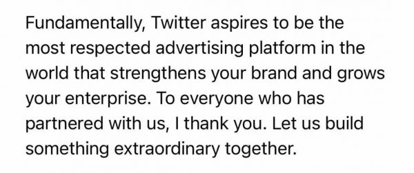 2、推特渴望成为世界上最受尊敬的广告平台(好的广告就是应该准确满足客户需求,而不是只顾钱和流量)。