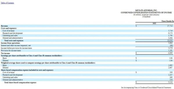 再看衡量货币化的关键指标,Facebook每用户平均收入(ARPU)为9.41美元,同比下滑5.9%。财报显示,整个Meta应用家族交付的广告印象与上年同期相比增长17%,但每广告平均价格与去年同期相比下降18%。