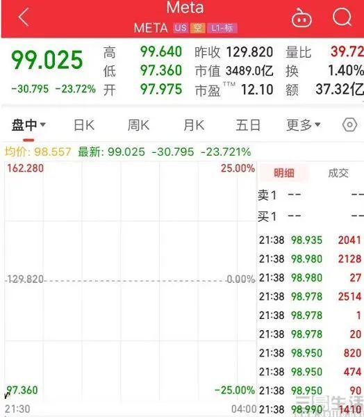 几乎所有关键指标都表现糟糕所带来的结果,就是Meta的股价在当地时间本周四开盘前暴跌近25%,市值蒸发了800多亿美元,股价更是自2016年2月以来首次跌破100美元。事实上,Meta此次的财报难看几乎是必然,支撑其营收的广告业务不仅受到了全球数字广告大盘下滑的负面影响,更有来自苹果iOS限制广告追踪的“DEBUFF”。