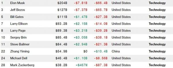 寒气笼罩:全球前20大科技行业富翁,今年身家已蒸发近5000亿美元