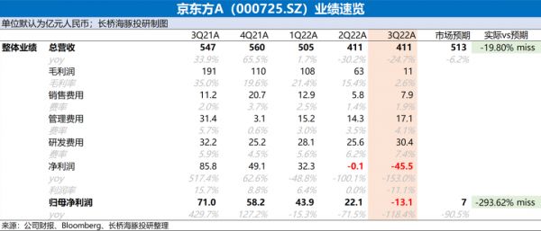 2)利润端的不及预期:面板行业在三季度已经打破现金成本,而一致预期仍给出7亿元的季度预期,也显得不具有合理性。海豚君在上季度财报点评《京东方:买的不是业绩,是周期反转》中已经提到“随着三季度面板价格的继续下探,公司在三季度可能出现亏损的情况“。