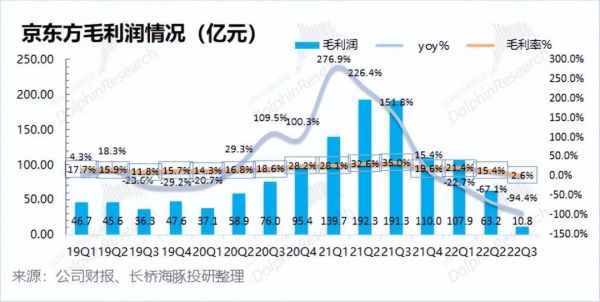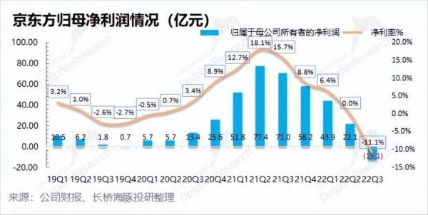 京东方2022年第三季度实现毛利10.8亿元,同比下滑94.4%。毛利端的继续大幅下滑,主要由毛利率骤降两方面导致。