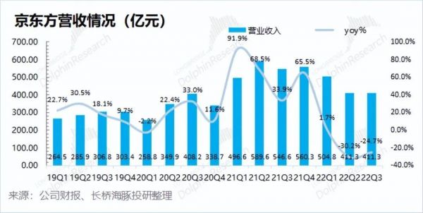 京东方2022年第三季度总营收411.3亿元,同比下滑24.7%,低于市场预期(513亿)。公司营收连续2季大幅下滑,主要是因为显示器下游需求疲软,导致产品价格走跌。