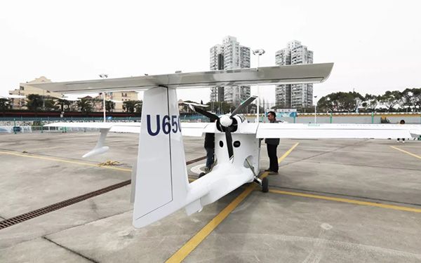 6月23日,澎湃新闻(www.thepaper.cn)记者从上海市金山区获悉,北京时间5月29日清晨5时58分,一架喷涂着中国邮政LOGO的中大型水陆两栖无人机U650,载满邮件从上海金山幸福水上机场起飞,于早晨6时50分平稳降落在浙江舟山嵊泗岛水域,以平均135km/h的速度,历时52分钟飞行110公里。本次飞行是国内首例使用大型固定翼无人机实现海上运邮的案例。