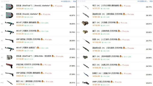 “再低,收益率也不会低于10%。”投资者阿乐很有信心。第三方检测网站CSOB的数据也显示,《CSGO》热门游戏饰品的年化收益率大多在10%-20%以上,部分皮肤甚至能达到50%的年化收益。