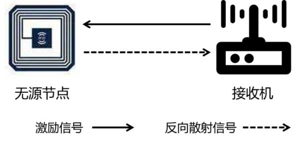 反向散射通信已经广泛应用于RIFD(射频识别)系统中,形成很多规模化商用的案例。其工作原理是接收机(一般为RFID阅读器)发送射频激励信号,激活无源节点(一般为RFID电子标签),电子标签利用反向散射通信将自身信息调制到该射频信号上,阅读器接收到无源电子标签的反射信号并进行解调,实现信息传输(见图2)。