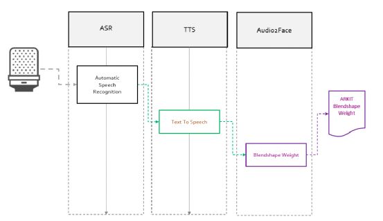值得注意的是,FACEGOOD主要完成Voice2Face部分,ASR,TTS由思必驰智能机器人完成。 如果你想用自己的声音,或者第三方的ASR,TTS可以自行进行替换。 当然FACEGOOD Audio2Face部分也可根据自己的喜好进行重新训练,比如你想用自己的声音或其它类型的声音,或者不同于FACEGOOD使用的模型绑定作为驱动数据,都可以根据下面提到的流程完成自己专属的动画驱动算法模型训练。