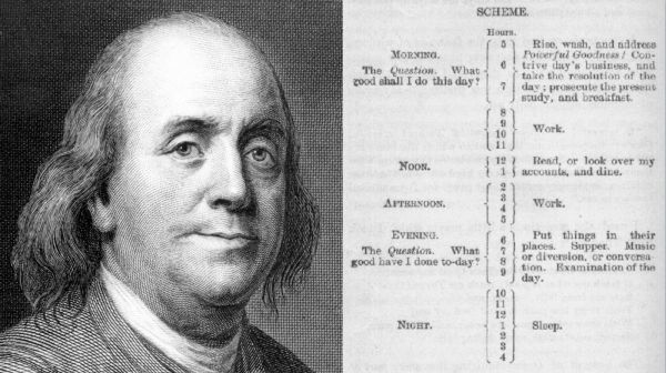 为了确保你在做高杠杆率的活动,需要审查你是如何花费时间的。在专业日历广泛使用之前,本·富兰克林也知道他最宝贵的资源是时间,需要积极主动地分配。