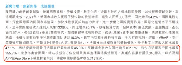 时至今日,咪咕视频在中国移动2021年财报中仅体现为,在北京冬奥会期间带动中国移动品牌曝光718亿次。现在咪咕视频最大问题依然还是没有足够的内容能够持续吸引用户高频使用,即便很多时候这一平台已经不需要额外付费。