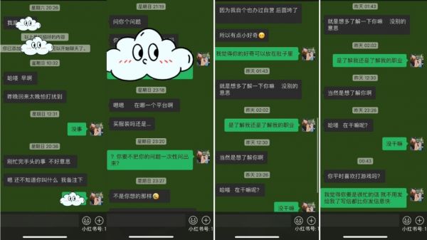 该博主也对负面评论进行了回怼,不过介于抨击她的人数在不断增加,后该博主选择删除了此条信息。从两人的对话中,作为旁观者可以看出,该名男士在苦苦寻找和两人相关的话题,并选择了以职业作为切入点,没想到画虎不成反类犬。不仅被女子觉得像是职业调查,更被吐槽发信息的速度比写信还慢。
