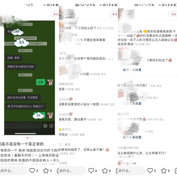 最近在小红书上有个帖子火了。某女生经过相亲认识一名男士,因不满该男士的聊天方式,于是发到小红书上进行吐槽。本来想着会有很多人跟着她一起讨伐,没想到却遭到了网友的一致抵制。