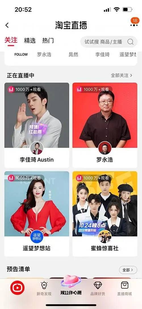 “双11”前夕,罗永浩、俞敏洪、头部直播机构遥望科技等纷纷宣布入驻淘宝直播,将淘宝直播作为长期经营的阵地。天猫“双11”开卖首小时,淘宝直播观众同比增速 600%,腰部主播交易额同比增速250%。