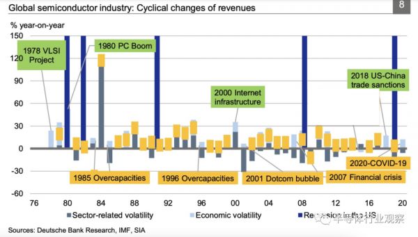 图1:全球半导体行业收入的周期性变化(图源:Deutsche bank research)