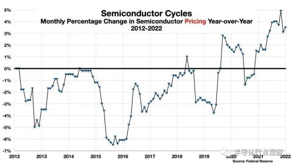 图3:2012-2022年半导体价格的变化百分比(图源:Forbes)
