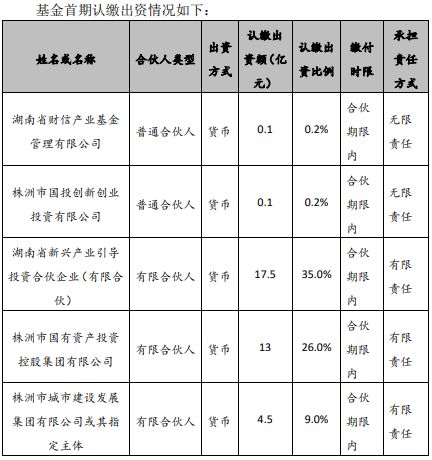据悉,该母基金遵循“政府引导、市场运作、放大资本、防范风险”的基本原则,由株洲市人民政府牵头,湖南财信金融控股集团有限公司、株洲市属国有企业作为主发起人,共同发起设立的市场化母基金。目标规模200亿元,首期50亿元,投资期限为5+5+2,即5年投资期,5年退出期,经普通合伙人同意可延长2年。