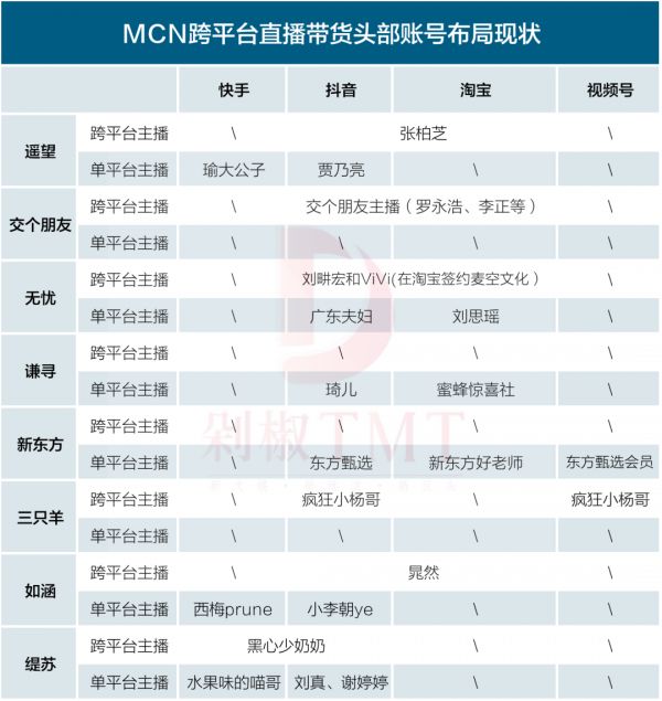 如今,MCN基于自身情况,产生了三种跨平台直播带货玩法。