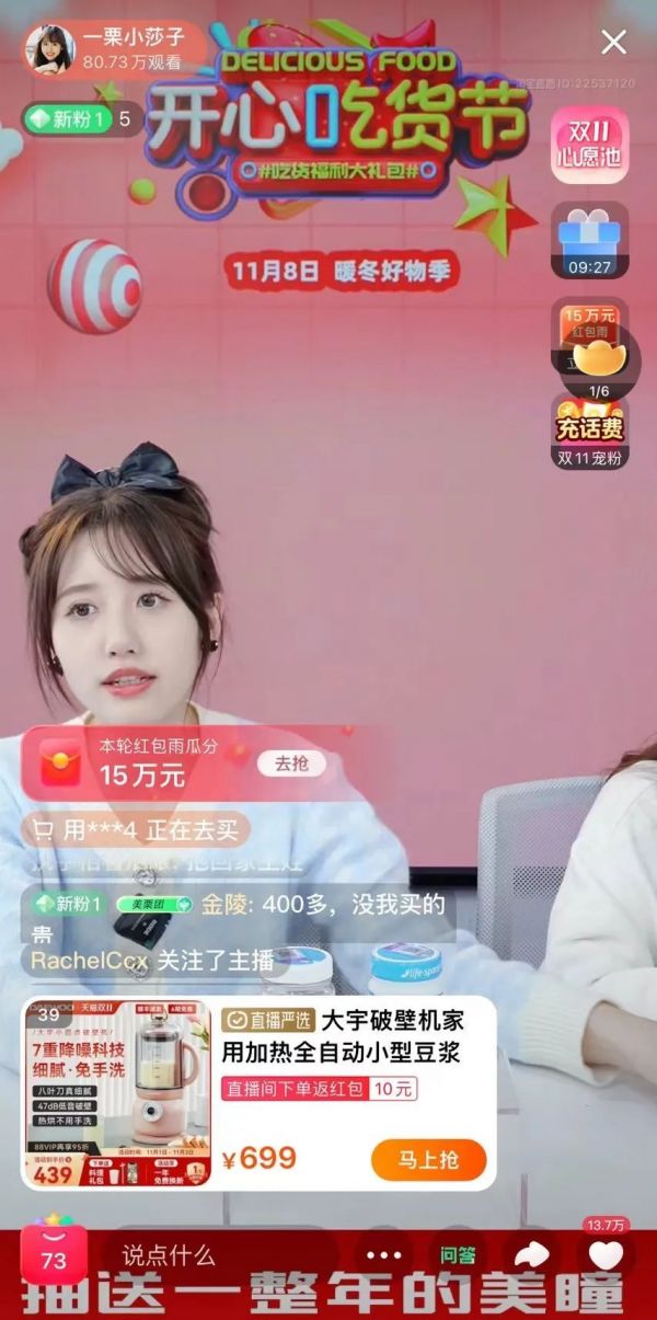 谦寻则在这次双11押注旗下的两大主播直播间:琦儿和蜜蜂惊喜社,分别在抖音和淘宝带货。