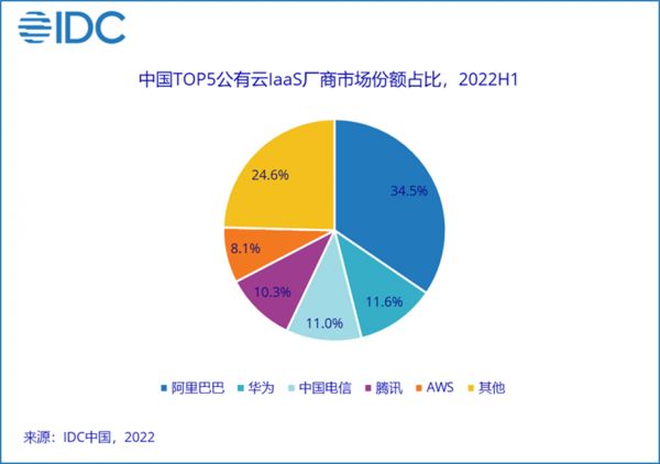 中国电信这两年的市场份额上升迅速,据 IDC 不久前发布的中国公有云服务市场报告显示,2022 年上半年,中国电信已经凭借 11% 的中国公有云 IaaS(基础设施即服务) 市场份额,超过腾讯成为第三,逼近第二名华为云的 11.6%。