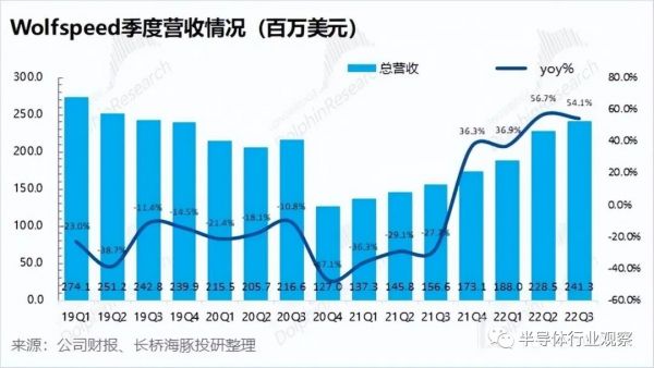 龙头厂商Wolfspeed 2023 财年第一季度实现营收2.41 亿美元,略超2.39 亿美元的市场预期,连续 2 个季度实现 50% 以上的同比增长,分析原因主要是由来自于功率器件业务运营的持续改善和材料业务方面 6 英寸碳化硅衬底的强劲需求所驱动。就在9月,Wolfspeed曾宣布在北卡罗来纳州赛勒城建造世界上最大的碳化硅材料工厂,以支持在莫霍克谷增加电力设备生产的计划。而近期,Wolfspeed又指出,预计2023财年将花费1亿美元用于启动解决纽约Marcy工厂产能增加的问题。