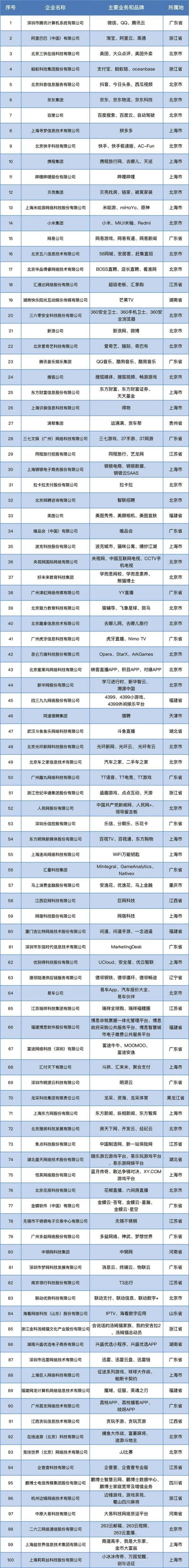 最后附上2022年中国互联网企业综合实力前百家企业名单。