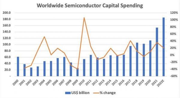 美国排行最高的三家半导体制造设备供应商的股价表现也不乐观。美国应用材料公司下跌了57%;泛林研究公司下跌了59%;科磊公司下跌了45%。从目前来看,尽管全球半导体下滑,但资本支出仍是新高。