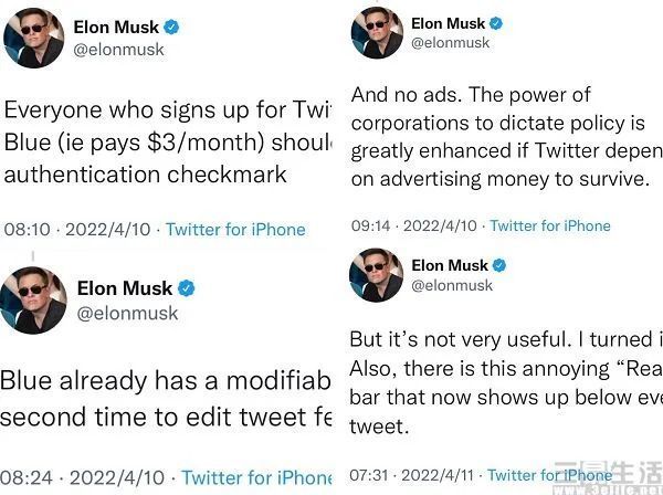 在“推特蓝”尚且没能得到更多用户青睐的情况下,或许即便是马斯克,也很难在订阅服务上大做文章。按相关媒体的报道显示,或许马斯克更多的是想要收取用户的“认证费”,而非将订阅服务价格翻倍卖给用户,毕竟此前早在今年4月,他便建议对“推特蓝”进行一系列改革,其中就包括大幅降价、禁止广告等。