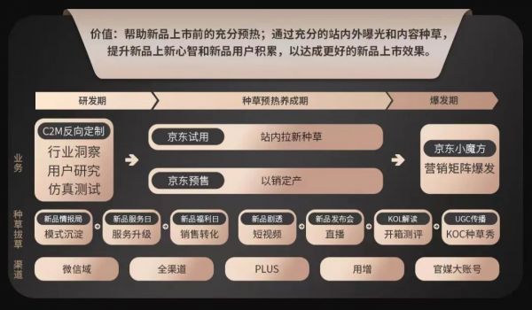 具体采用哪种形式,调用哪些资源,买手们会和京东小魔方一起,与品牌方提前沟通,根据产品特性、目标人群等做最佳匹配,目的是为新品积累口碑和人气,蓄水潜在用户。