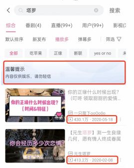 同时B站最火的塔罗牌视频是UP主“一只陛下”的视频【你的正缘什么时候出现】,播放量达到了惊人的430W。紧随其后的是UP主“元生塔罗”的视频【测一生良缘】,播放量同样达到了413W(果然当代年轻人都很关注婚恋问题。)