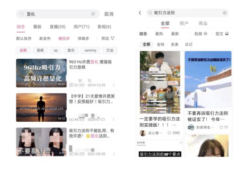越来越多的年轻人关注到了“吸引力法则”,小红书搜索“吸引力法则”后跟着的三个分类标签分别为“金钱”“变美”“日记”。大家围绕着如何赚钱、变美而使用积极的心理暗示。油管上有一位教大家如何显化的博主,甚至贴出自己坚定相信自己美丽如梅根后后的照片前后对比。
