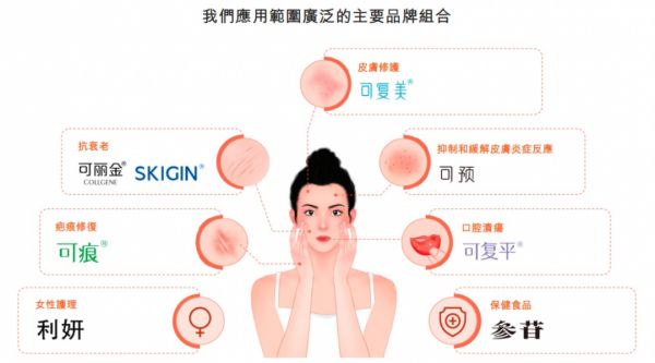 招股书显示,巨子生物的产品管线包括85款在研产品,产品组合则包括105项SKU,涵盖功效性护肤品、医用敷料和功能性食品的八大主要品牌,即可复美、可丽金、可预、可痕、可复平、利妍、欣苷(SKIGIN)以及参苷。可满足术后修护、初老肌肤、易敏感肌、问题肌肤等不同人群多样化的护肤需求。