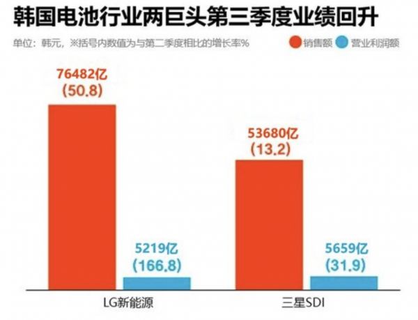除了LG以外三星SDI也在第三季度创下了最高业绩。