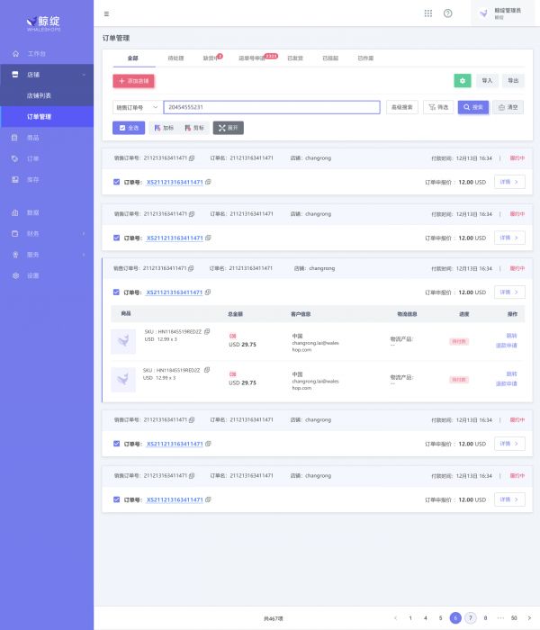 「鲸绽」原本是给国内跨境电商提供ERP系统,于去年年底时上线,产品打通Shopify、店匠、Woocommerce等独立站平台,功能包括订单管理、数据报表、仓库管理、智能补货等。
