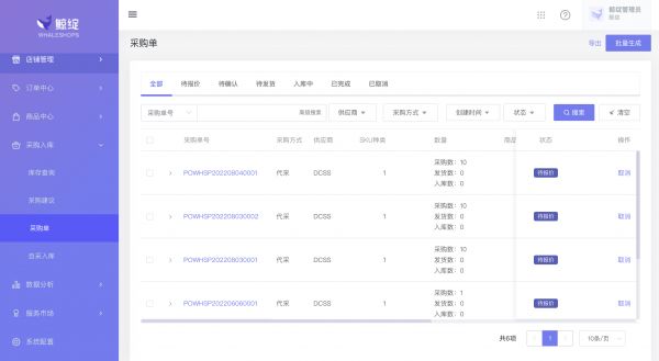 采购管理页面
