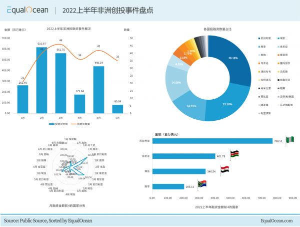2021年非洲投融资事件的数量和金额均创下历史新高,超过了过去七年的总和,引起媒体的广泛关注,沉睡的非洲经济似乎正在渐渐苏醒。为了判断这一乐观情绪是否能够延续,EqualOcean对2022上半年非洲大陆的投融资事件进行了盘点,本篇从融资数量、规模、国家分布等角度对非洲创投事件整体情况进行解析并聚焦获得融资金额最多的15家非洲初创公司,他们的融资规模均超过3500万美元。