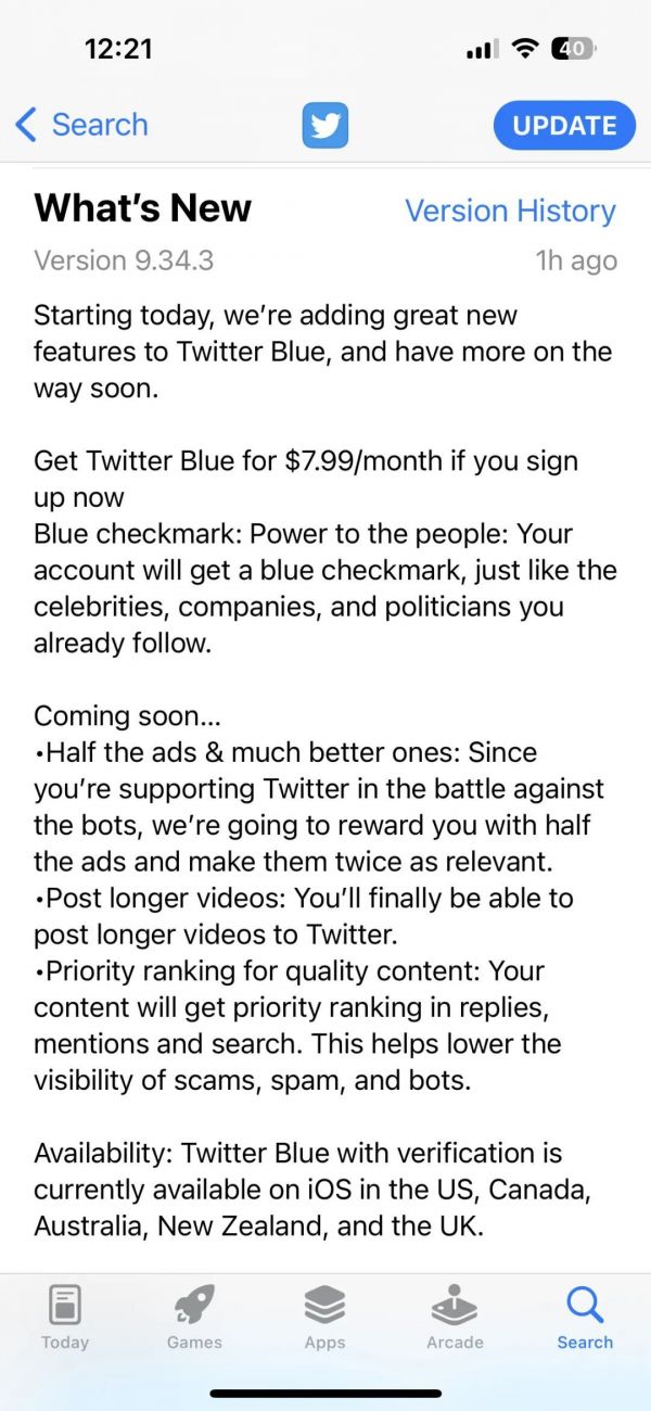 上周六是裁员之后的第一天,马斯克吆喝了数天的蓝V认证收费功能正式上线,每月收费7.99美元,比预定的11月8日提前了三天时间。此外,马斯克也宣布推特即将取消字数限制。实际上,这项产品功能早就研发完成了,但推特原管理层却出于各种考虑,迟迟没有正式上线。