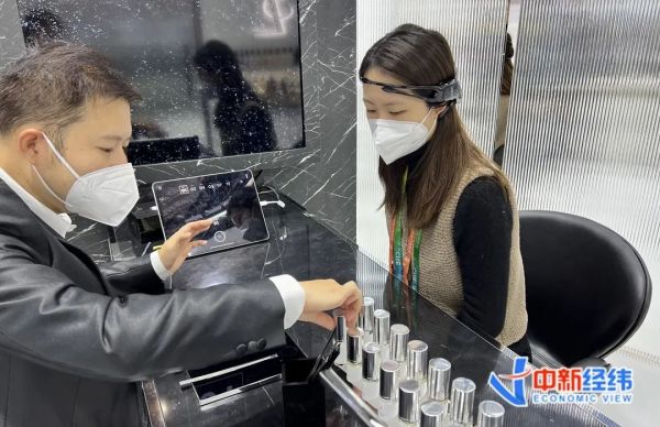 欧莱雅展台工作人员向中新经纬介绍,解决消费者的选香难问题,是该款展品研发的初衷。首先,消费者需要做一套问卷,了解顾客对香水的基本偏好。接着,在圣罗兰电波穿香室中消费者戴上头戴式脑电波监测仪,系统会根据问卷情况,选出6种香调让顾客试闻。在试香的过程中,系统会时时捕捉消费者脑电波和情绪的变化,并通过独家人工智能算法,为消费者推荐商品。