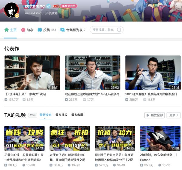 另一个重要原因,则是在直播带货这一看重“人货场”的地方,淘宝直播在“货”的属性上具备较多优势,由于掌握了耐克阿迪等国际大牌,淘宝直播能够给zettaranc提供其在B站无法获得的合作对象。