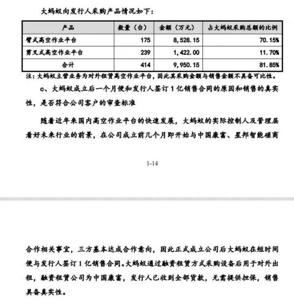 对于大蚂蚁,监管在上一轮的第三次问询中曾要求公司补充说明其股权结构、出资来源、业务规模和下游客户情况,补充披露大蚂蚁成立后一个月便和公司签订 1 亿销售合同的原因和销售的真实性等。