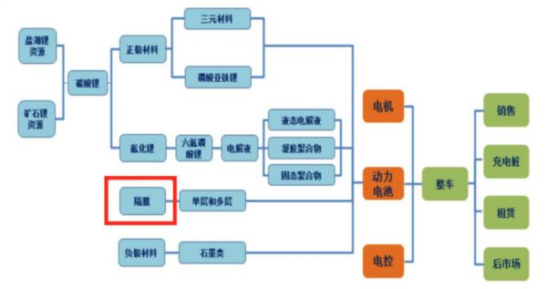 (隔膜在新能源汽车产业链中的位置。来源:星源材质财报)